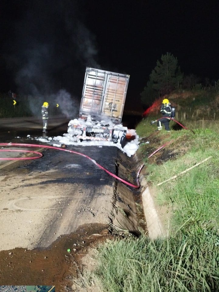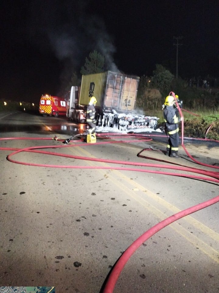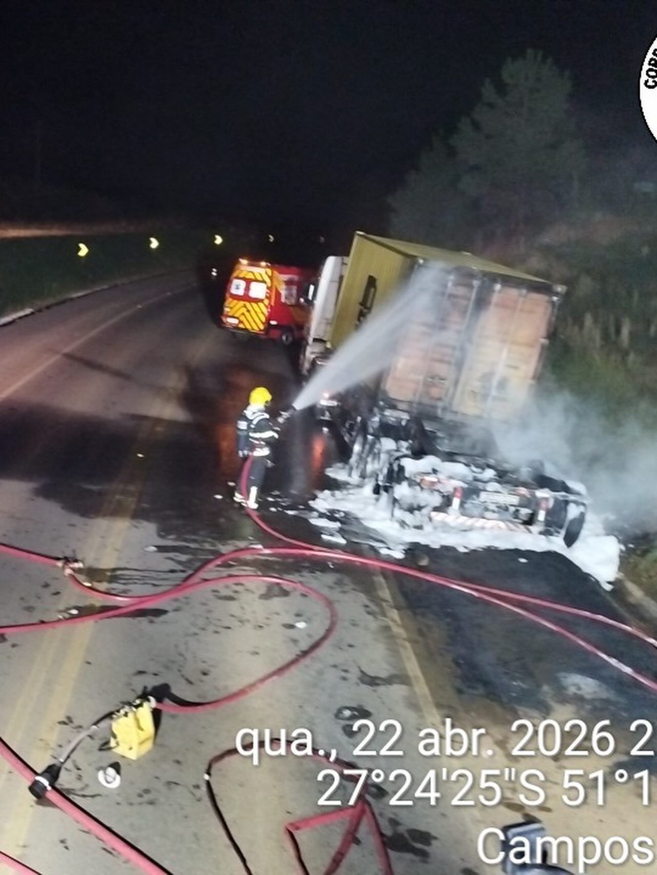 Um incêndio em veículo de carga mobilizou o Corpo de Bombeiros na noite desta quarta-feira, dia 22, por volta das 21h30, na BR-470, nas proximidades da empresa Forplan Engenharia, em Campos Novos.
